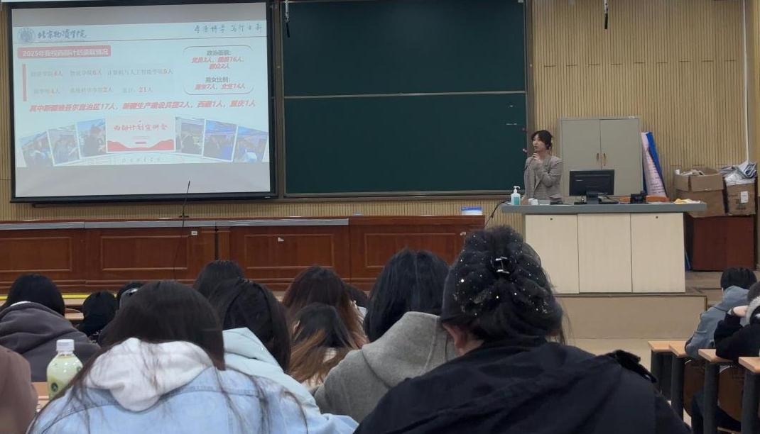 会上,学校团委副书记李思奇围绕西部计划介绍、报名流程与要求、服务内容与专项、政策保障与支持进行了全面介绍。重点解读了志愿者在服务期间可享受的补贴、保险,考研、公务员招录政策,就业指导等支持政策。通过宣讲,同学们进一步加深了对西部计划政策内涵和现实意义的认识,也更加深刻地理解了“到西部去、到基层去、到祖国和人民最需要的地方去”的责任担当。