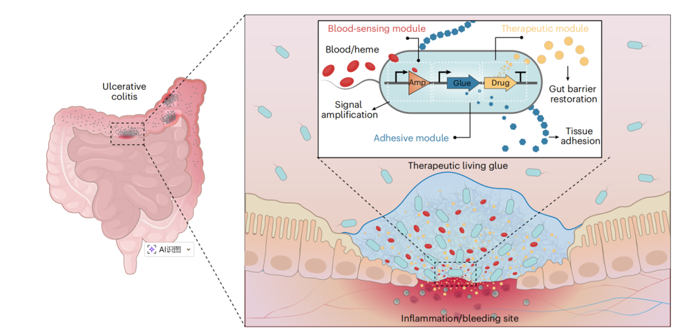 医学部黄鹏教授团队在Nature Biotechnology发表智能活胶水自主感知与精准治疗炎症性肠病研究成果