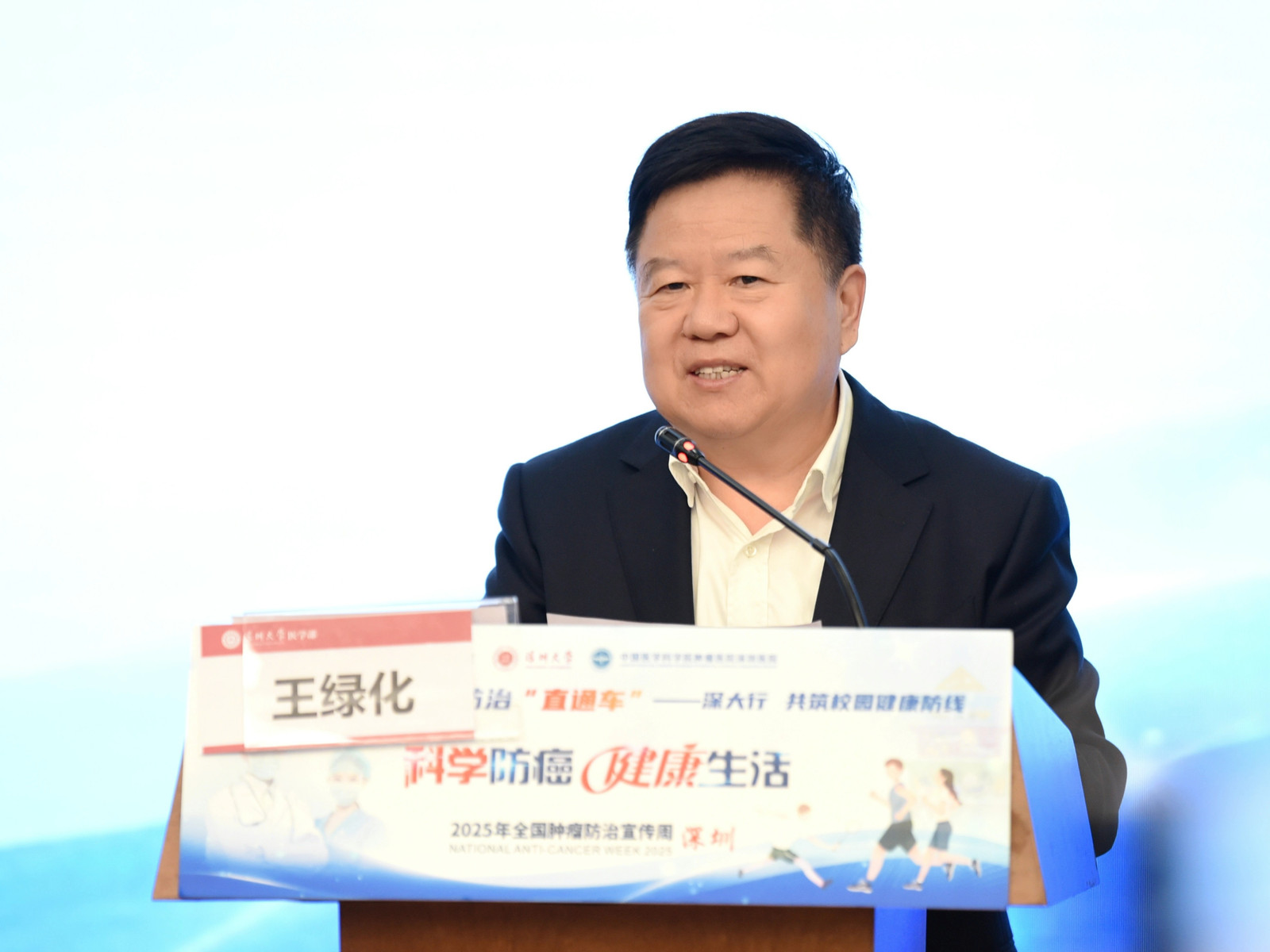 中国医学科学院肿瘤医院深圳医院院长王绿化指出,高校是防癌科普的关键阵地。他呼吁广大师生掌握癌症防治科学知识,践行健康生活方式,成为癌症防治知识的传播者和健康生活的倡导者。通过 "1+N" 链式传播模式(即1名学生影响N个家庭成员),增强全民科学防癌意识,让健康理念从校园延伸至家庭与社会。