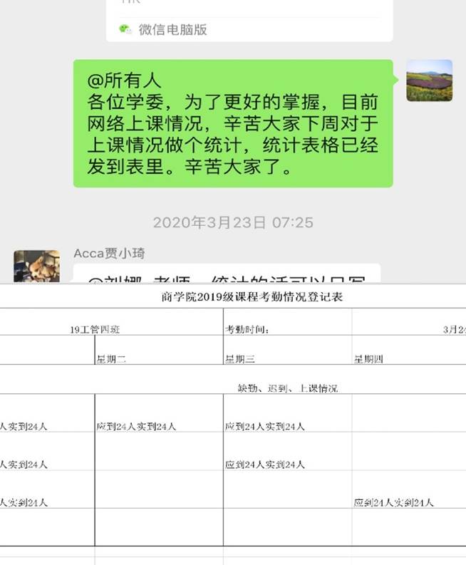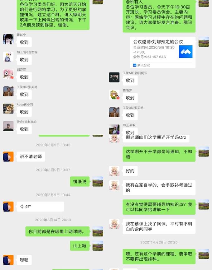 坚持“以学生为本”的原则,全面了解学生在线上学习存在的问题。一是通过直播互动的形式交流线上学习;二是充分发挥班长、学习委员等学生干部的“线上观察员”作用,通过他们的反馈及时了解在线上学习中的情况。三是对疫情严重地区、经济和学业上存在困难的同学进行一对一联系,了解他们的学业状态,做到精准帮扶。