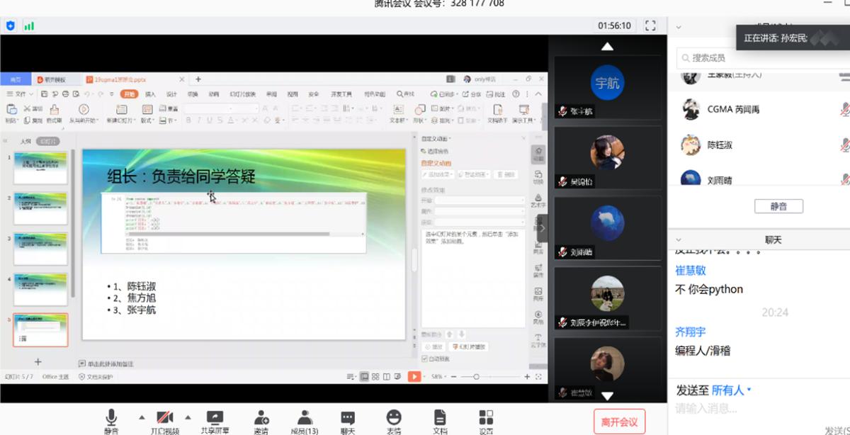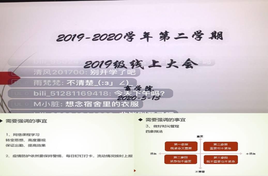 各个班级也集合自身班级情况,召开以“云端模式下如何更好地开展学习”为主题班会。同学们互动积极,既指出自身存在的问题,又针对问题提出了意见和建议,制定切实可行的方案,如进行课堂笔记共享、建立班级学习互助小组、推选“云端”学习标兵、学习经验分享等。通过行动,加强学风班风建设,以学促建,以学聚力,保证线上学习效果,提高线上学习效率,真正做到。