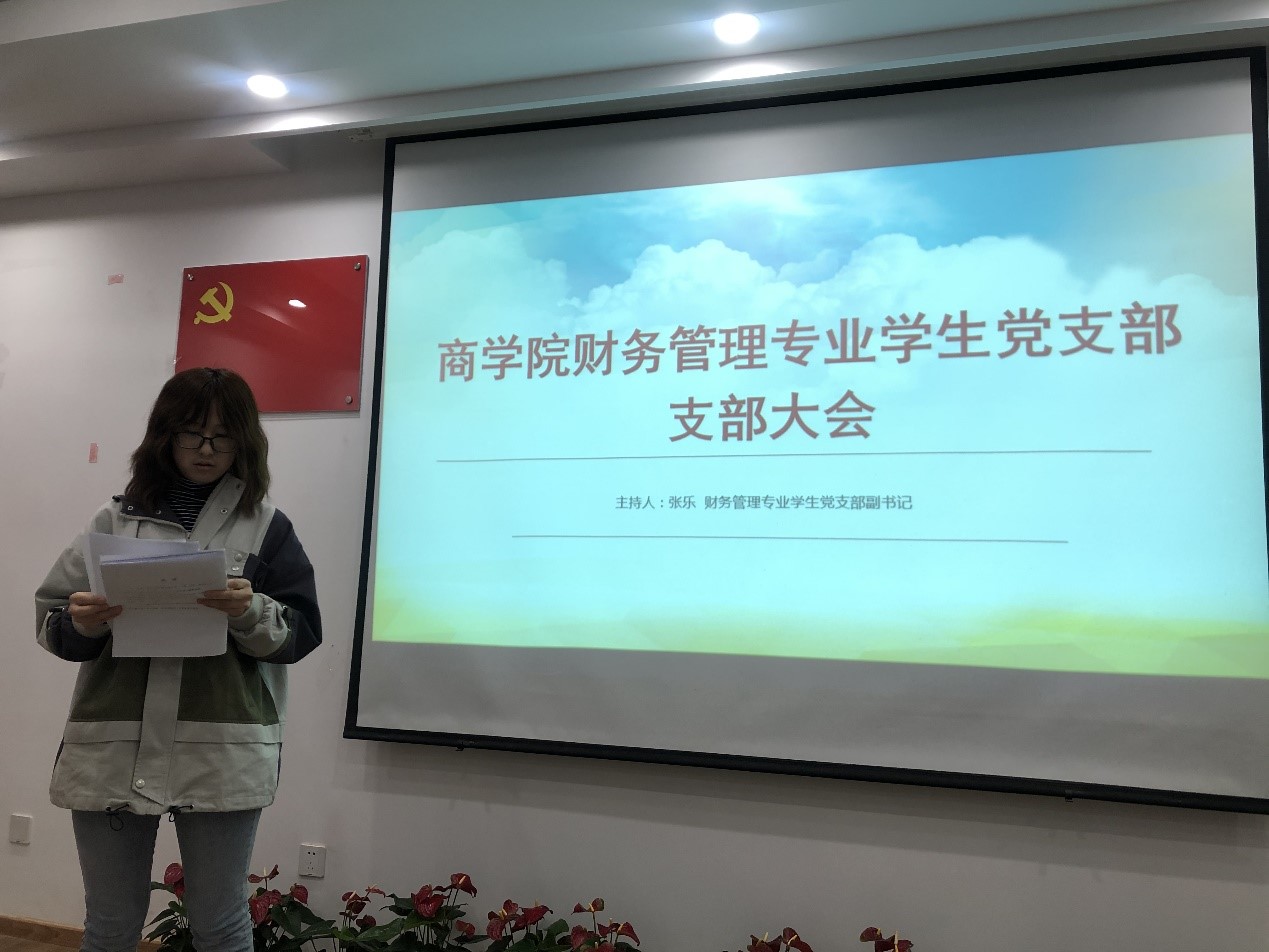 财务管理学生党支部于科研楼410召开支部预备党员转正大会,支部书记杨柳依依、支部全体党员和发展对象参加本次会议。本次会议由支部副书记张乐主持。