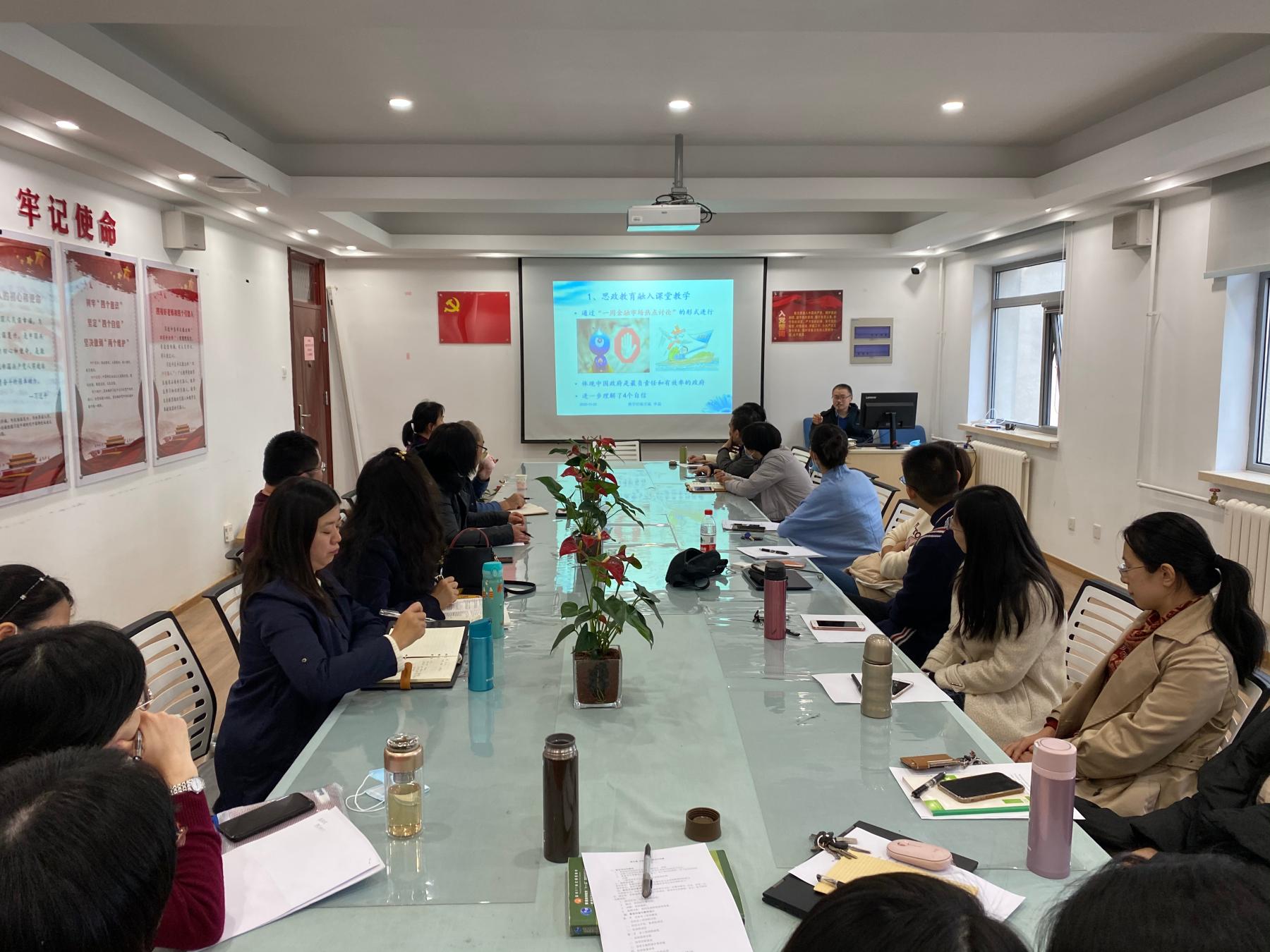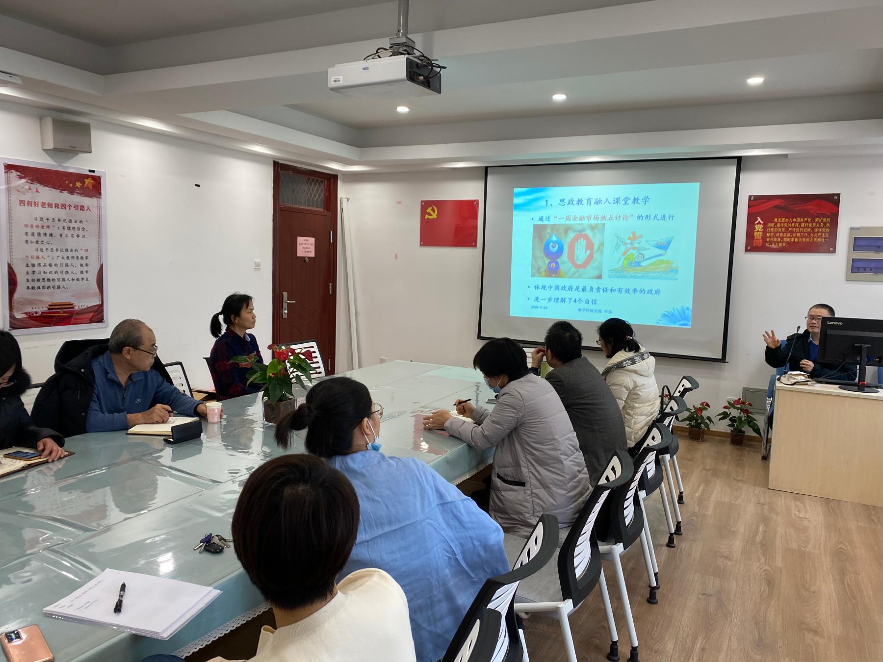 单磊老师首先向青年教师们分享了自己的教学经验与技巧,回顾了自己以前参加青年教师教学基本功比赛的经历与经验,并介绍了这一次教学技能评价指标体系与各项分数权重,以供青年教师学习和参考。向东老师结合自己作为教学督导的工作经历,指出了青年教师在教学过程中容易出现的问题,并提出了自己的体会与建议。王丹老师和郑可人老师作为女仆