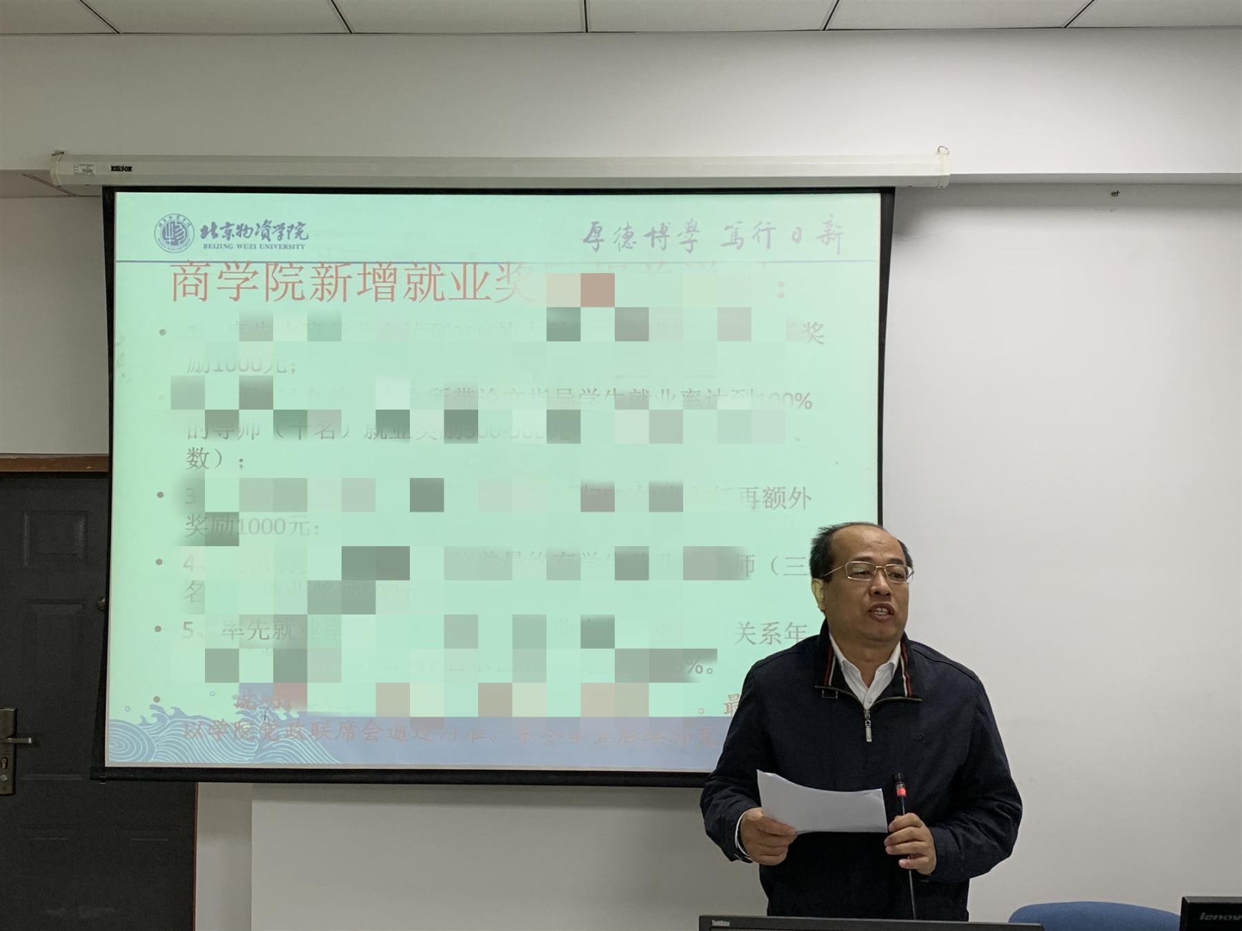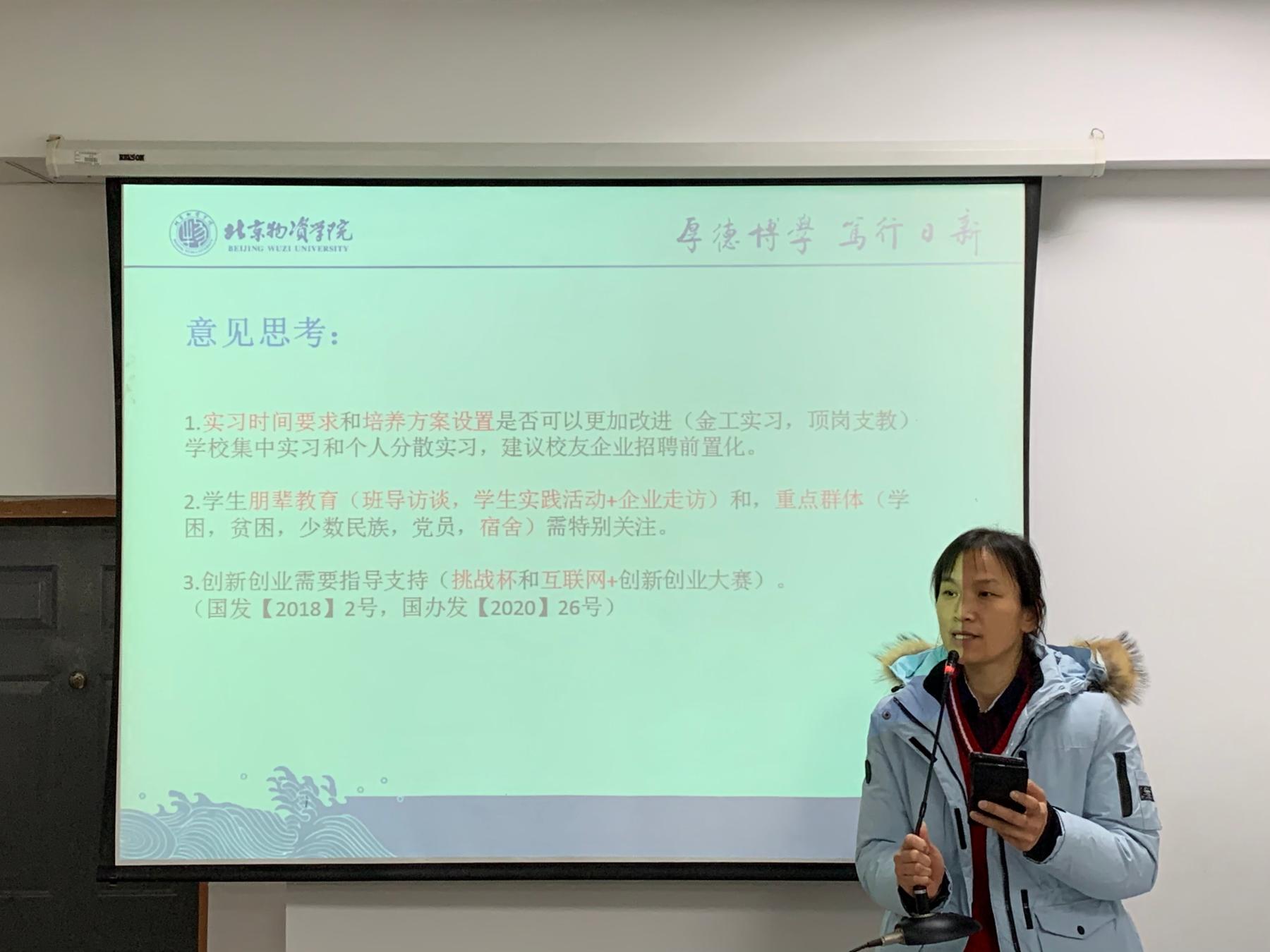 党委副书记陈霄英介绍了学院就业工作奖励办法,并对毕业年级班主任和毕业年级导师应做的工作进行了讲解。陈霄英强调,要及时关注学生学业情况、就业进展和思想动态,帮助解决实际困难,重点掌握“三困一少”学生情况,一对一提供就业指导。