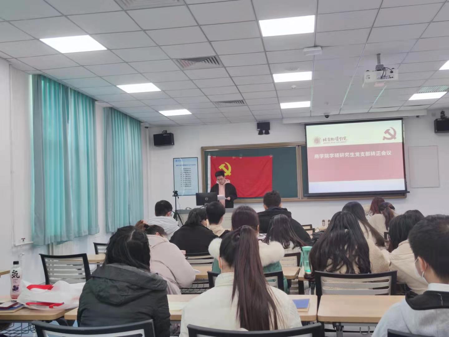 学硕研究生党支部于主教107召开了2020年秋季学期预备党员转正大会。会议讨论关于张云、张霞、宋蓉、郝丹阳、郭保云、刘洋6名同志申请转为正式党员的问题。本次转正会议由支部书记王洋老师主持,支部正式党员、预备党员参加,贺玉英老师作为组织员列席预备党员转正大会。