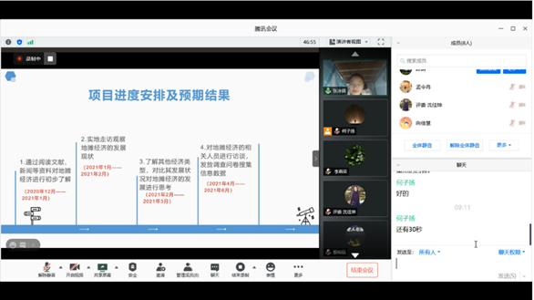 于2021年1月9日上午8点在腾讯会议上组织了2020-2021大学生创新创业实培项目立项答辩会,共40个项目分AB组进行了立项答辩,李燕荣、殷裕品、祝映莲、董丽萍、曹键、沈佳坤六位老师作为评委老师对各项目小组进行了提问和指导,李巧老师精心准备和组织了整场答辩。
