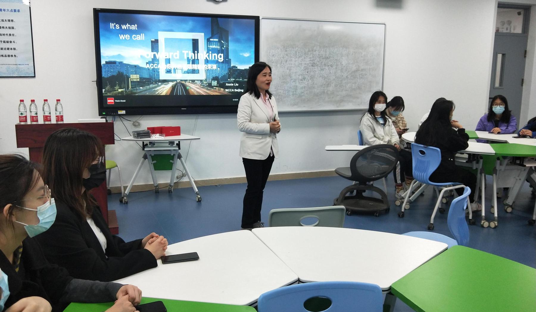 首先,张莉娜老师对ACCA的国际化定位与人才培养目标做了进一步阐述,并希望能够本次主题班能让同学积极地把握现在,并结合自身特点,规划未来。