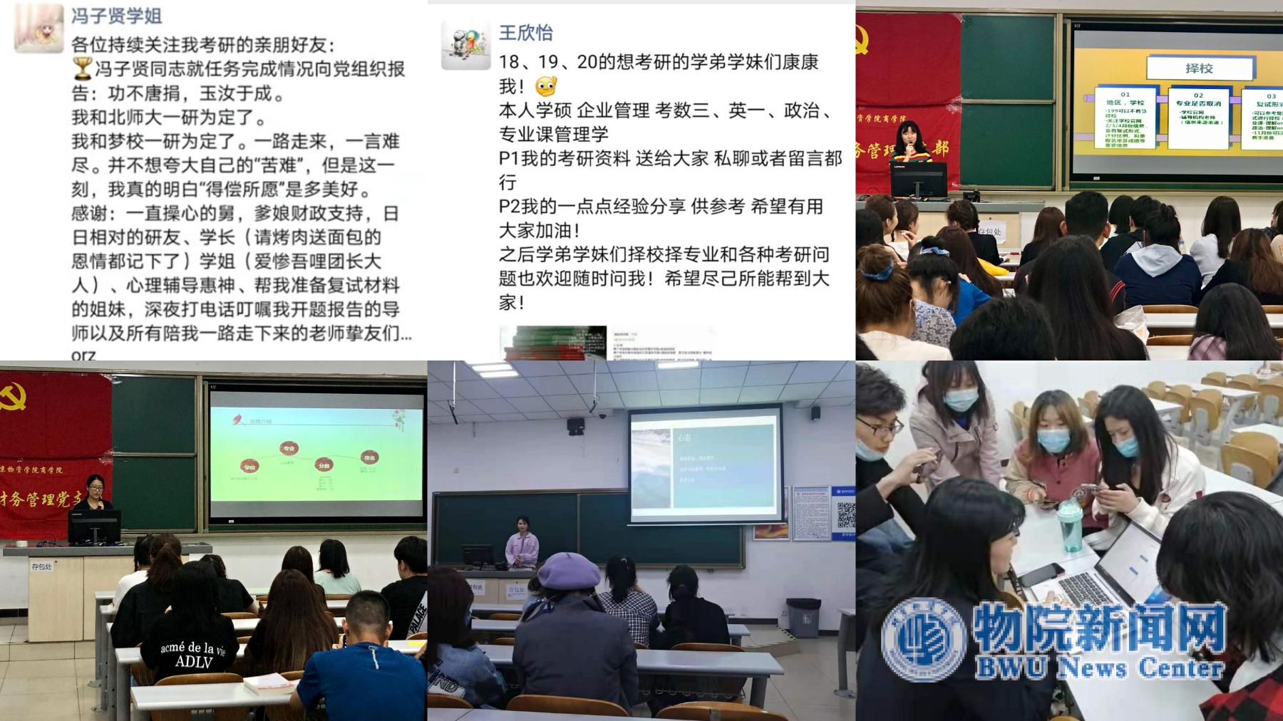 经验分享频次高、覆盖广。积极开展党团支部“结对子”深入帮扶活动,4月中下旬,17级财管专业考入华北电力大学的陈怡如、考入北京师范大学的冯子贤分别为19级财管专业学生、19级管理会计专业学生分享考研经验并进行结对子帮扶活动;5月份,党支部举行党史学习教育扩大会议,会上邀请了考研上岸的四位党员进行经验分享,为财管专业18、19、20级同学解答疑惑,分享会结束后,毕业党员还同学弟学妹添加微信,以便更好传授经验,提供资料。期间,多名支部毕业生党员将考研经验整理为电子版,与考研书籍一并赠与18级学子,积极鼓励、帮助支持备考的专业同学们,凸显了党员的先锋模范作用,诠释了学生党员践行初心使命的责任担当。