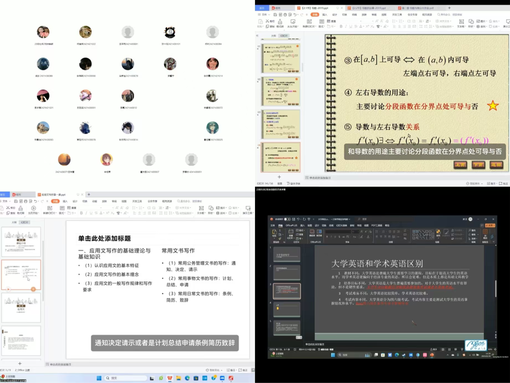 高年级学生为新生同学开设四门大一基础课程,包括高等数学、大学英语、经济法和应用写作。每位讲师通过线上授课的方式,使新生们对大学课程形成初步认识,建立专业框架。新生积极参与,踊跃提问,为新学期的学习规划提供有力支持。