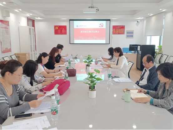 党委书记常娥传达了学校党委二级党组织负责人工作例会精神。她介绍了学校对二级党组织要求的关于“一融、双高、三引、四级、五同”的工作机制,并重点从如何做好谈话交心、行走课堂、联学共建、特色党建工作等方面提出了具体要求和做法,要求大家强化“班子团结首要在书记、队伍建设首要在书记”责任意识,认真履行主体责任,把好方向、带好队伍;以师生党支部结构调整为契机,加强对党支部工作内容学习,提升党支部建设规范化水平;同时加强队伍建设,落实肩上责任,将工作做实;加强谈心谈话,摸清底数,找准路径,务实功、出实招、求实效;提高站位,立足学校整体发展大局思考工作,将个人发展小逻辑融入到学校发展大道理中;各支部要加强专业学习,推动党建与业务相融互促。