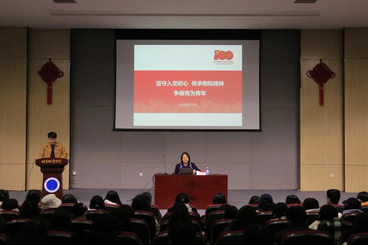 党委书记常娥为全体入党积极分子做“坚守入党初心传承物院精神争做有为青年”主题党课,会议由市场营销与电子商务专业学生党支部书记陈昕主持。