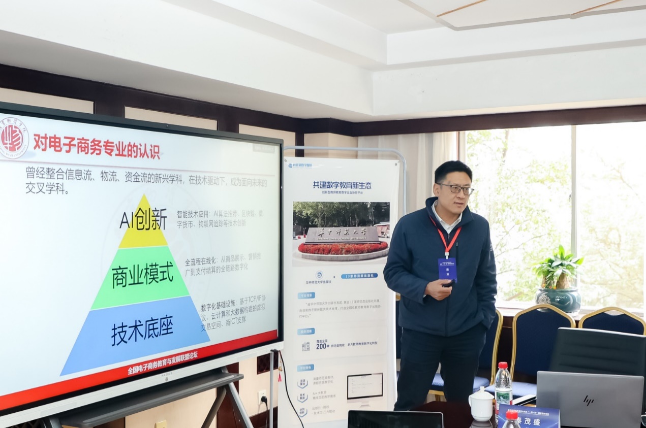 张闯副院长在“学术创新与理论前沿”分论坛上发表题为《人工智能时代新电商人才培养:变革、挑战与路径》的演讲,他指出,人工智能正重塑电商行业,高校需重构课程体系,强化数据思维与AI技术应用能力培养,并提出大模型时代背景下新电商人才的核心能力模型以及培养路径。演讲引发与会学者热烈讨论,为行业提供了前瞻性思路。