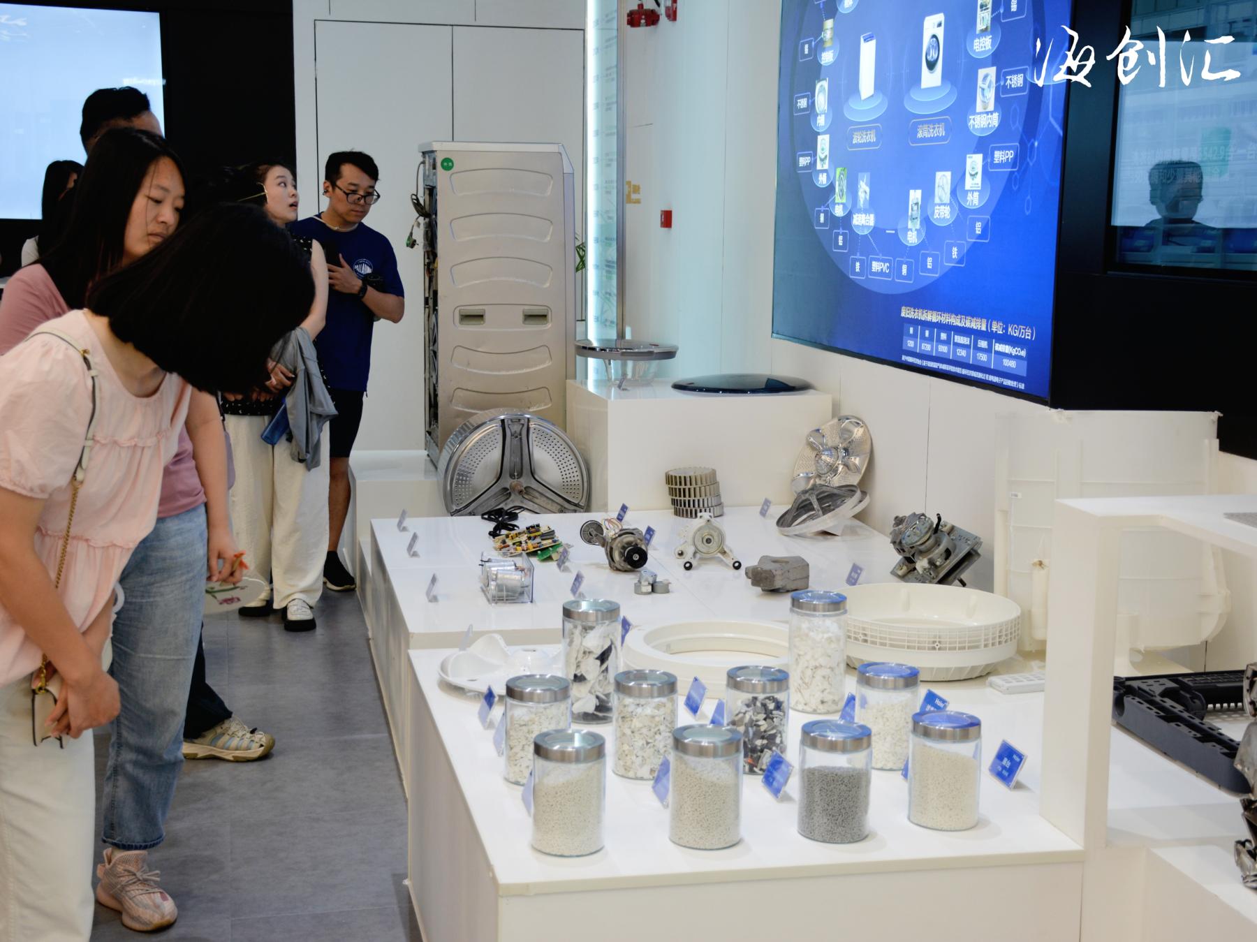 带着管理哲学的思考,下午学员们走进了此行最后一个站点——海尔绿色再循环互联工厂。这里彻底颠覆了人们对“垃圾处理厂”的刻板印象。入口处,一面由废弃电器零件拼贴而成的艺术墙,镌刻着“无限循环,价值循环”的宣言,瞬间将抽象理念具象化。在拆解车间,学员们通过观景窗见证废旧家电“重生”,高速粉碎机将电器粉碎成碎片,涡流分选技术快速分离铜铝金属;再生工艺区更惊人,经16道高纯度清洗工序、高精度分选(硅胶选、静电选、色选)和高性能造粒,产出的再生塑料颗粒纯度达99%,性能接近新材料,可直接用于新家电生产,实现“从产品到产品”闭环。
