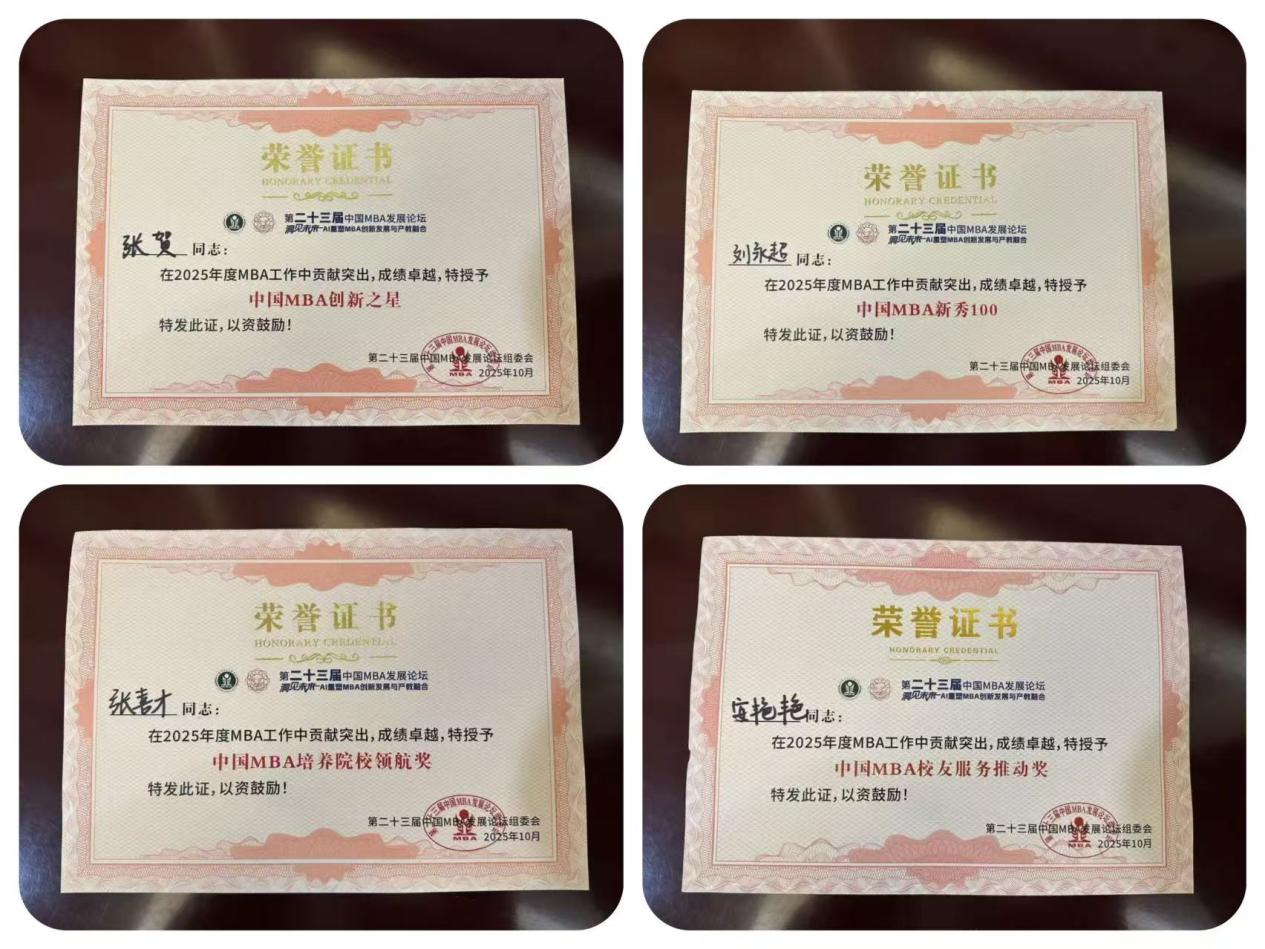 MBA教育中心在集体与个人奖项上均有斩获,展现了其体系化建设的成效。