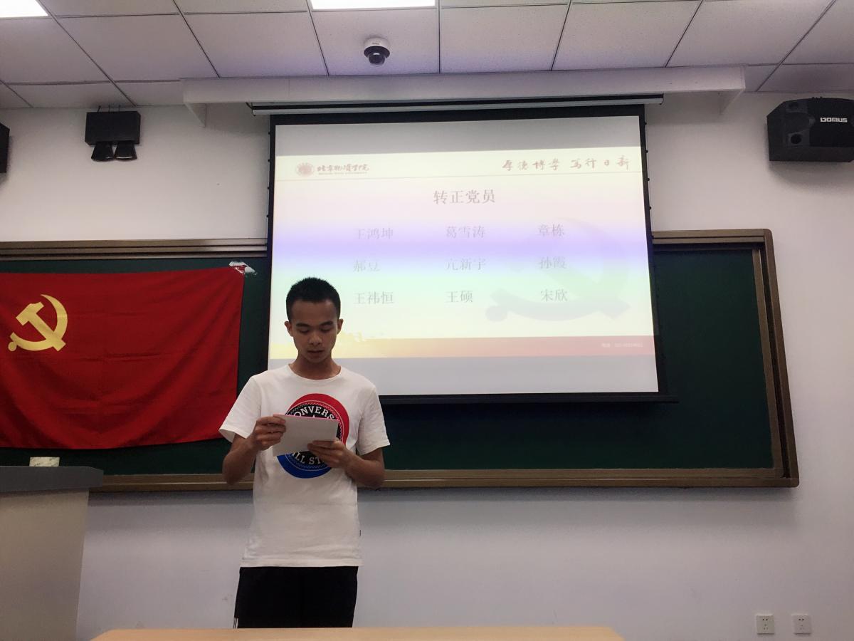 本次会议拟转正预备党员9名,首先9名预备党员依次宣读转正申请书,介绍一年预备期的自身基本情况,认真汇报自己在预备期的思想、工作表现情况及今后努力的方向。随后与会党员对各位预备党员发表意见,并讨论9位同志是否符合转正成为正式中共党员的条件,之后10名有表决权的正式党员进行投票,经投票,宋欣、亢新宇、郝豆、孙霞、王鸿坤、王硕、王祎恒、葛雪涛、章栋共9名同志通过选举,转正成为正式党员。