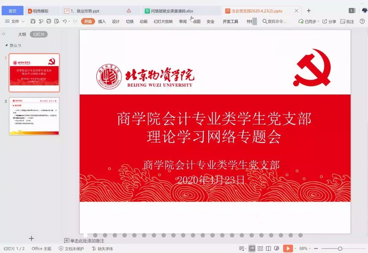 会计类专业学生党支部在“腾讯会议”线上平台开展了四月份理论学习网络专题会。此次会议由注会学生党支部书记闫慧凝老师主持,女仆