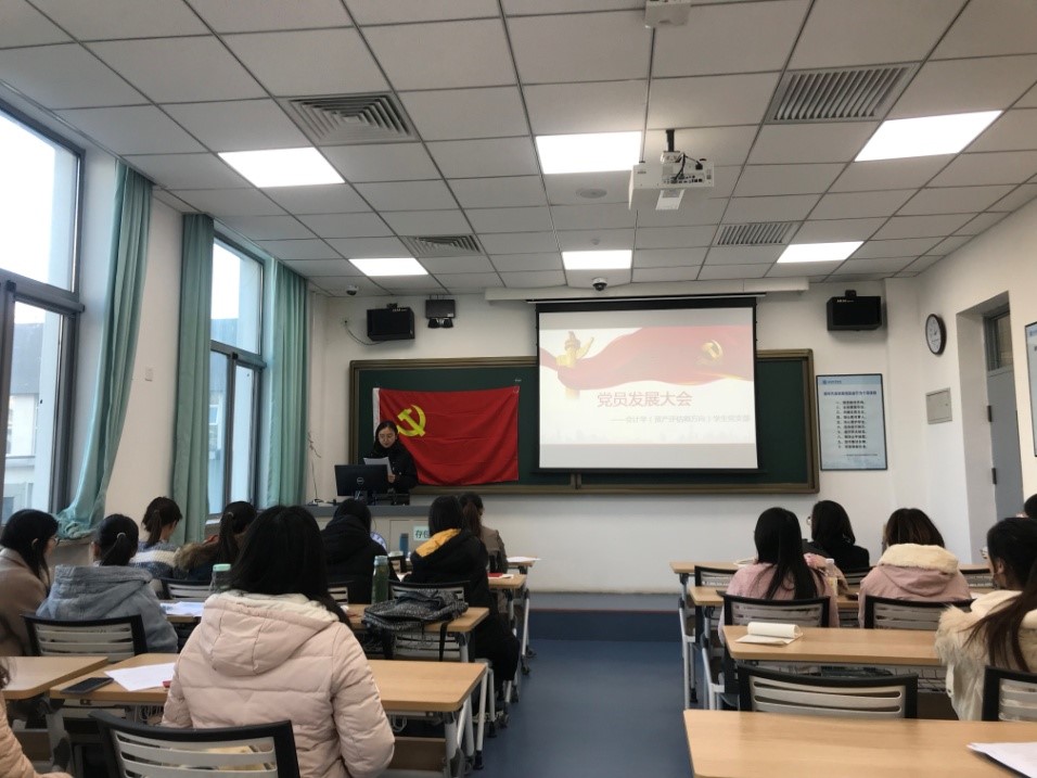 注资学生党支部于主教106召开了2019年秋季学期预备党员发展会。会议讨论关于李柔萱、刘宇彤、常雅淇、常钟毓、马晓娟、王玥红、熊丹阳和闫昊颖8名同志申请发展为预备党员的问题。本次发展会由注资学生党支部副书记王家华主持,注资学生党支部书记叶婷婷老师、5名正式党员、9名预备党员和本期8名发展对象出席了此次会议。
