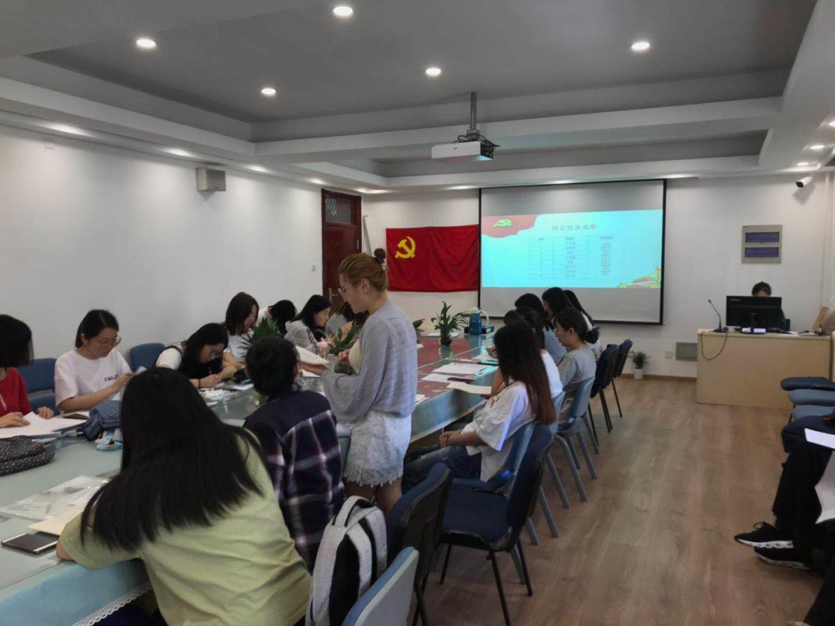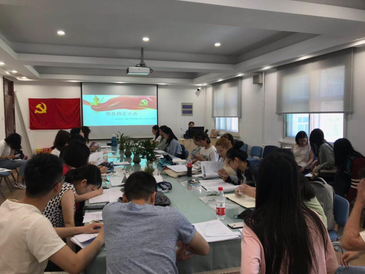 410教室召开了2019年春季学期预备党员转正会。会议讨论关于王吉瑞、杨婷婷、李影、毛雪翼、李蒙、赵宇涵、孙向媛、闫子菁8名同志申请转为正式党员的问题。本次转正会由注资学生党支部副书记赵宇涵主持,学生正式党员及预备党员共29人参加会议。