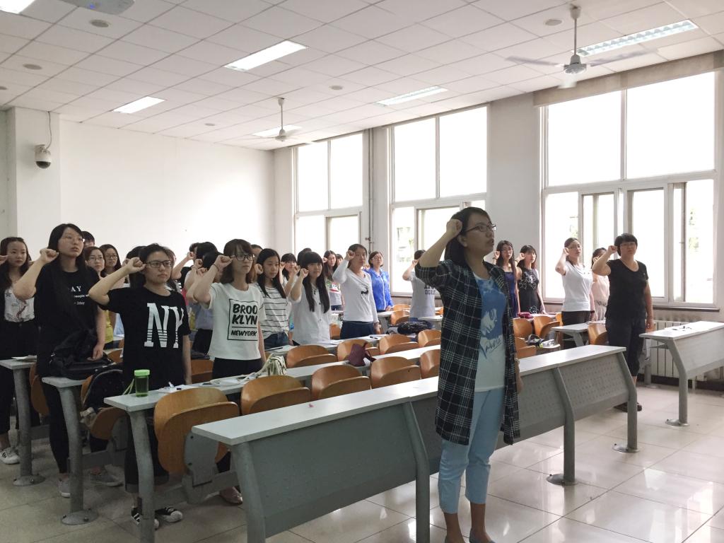 党委副书记常娥和辅导员李丹老师主持的以“重温入党誓词,迎接未来挑战”为主题的2016届毕业党员教育活动在二教101教室举行,2016届毕业党员82人准时到场参加。
