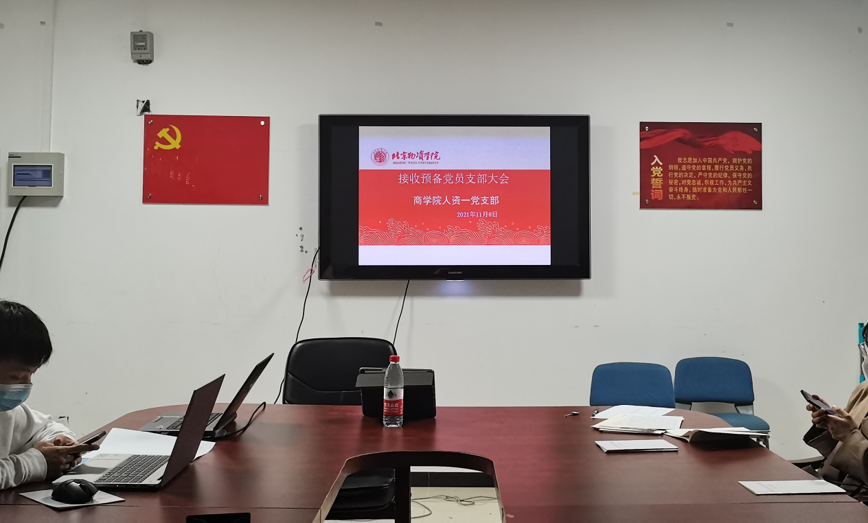 2021年11月8日15:30,人力资源管理专业学生第一党支部在科研楼402会议室召开接收预备党员大会。本次发展大会由人资党支部书记董海辰老师主持会议,贺玉英老师列席和人资学生第一党支部全体学生党员参会。