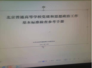 最后,左春玲老师解读了《北京普通高等学校党建和思想政治工作基本标准检查草考手册》,让党员教师了解了基层党组织应该承担的各项职责。