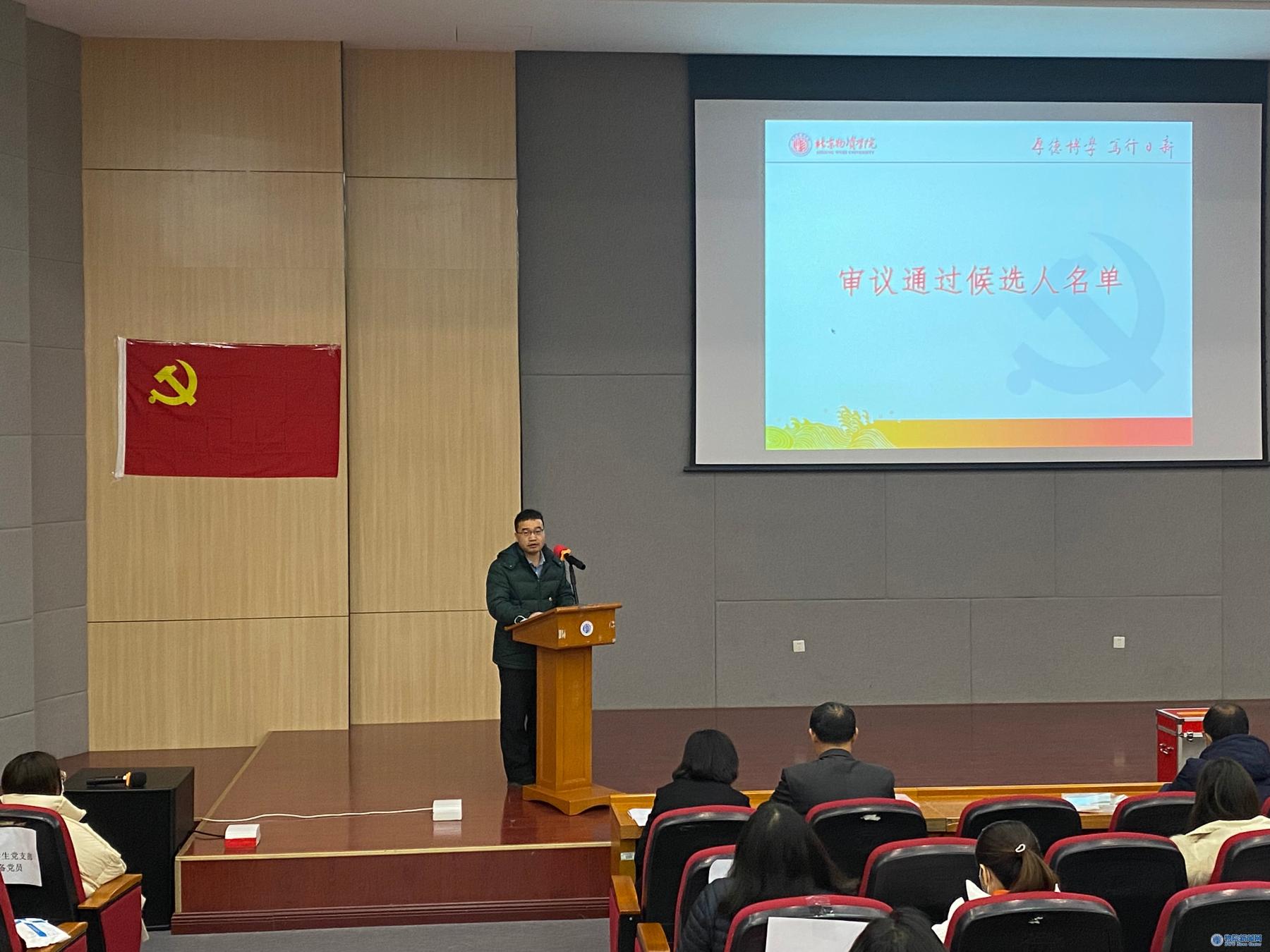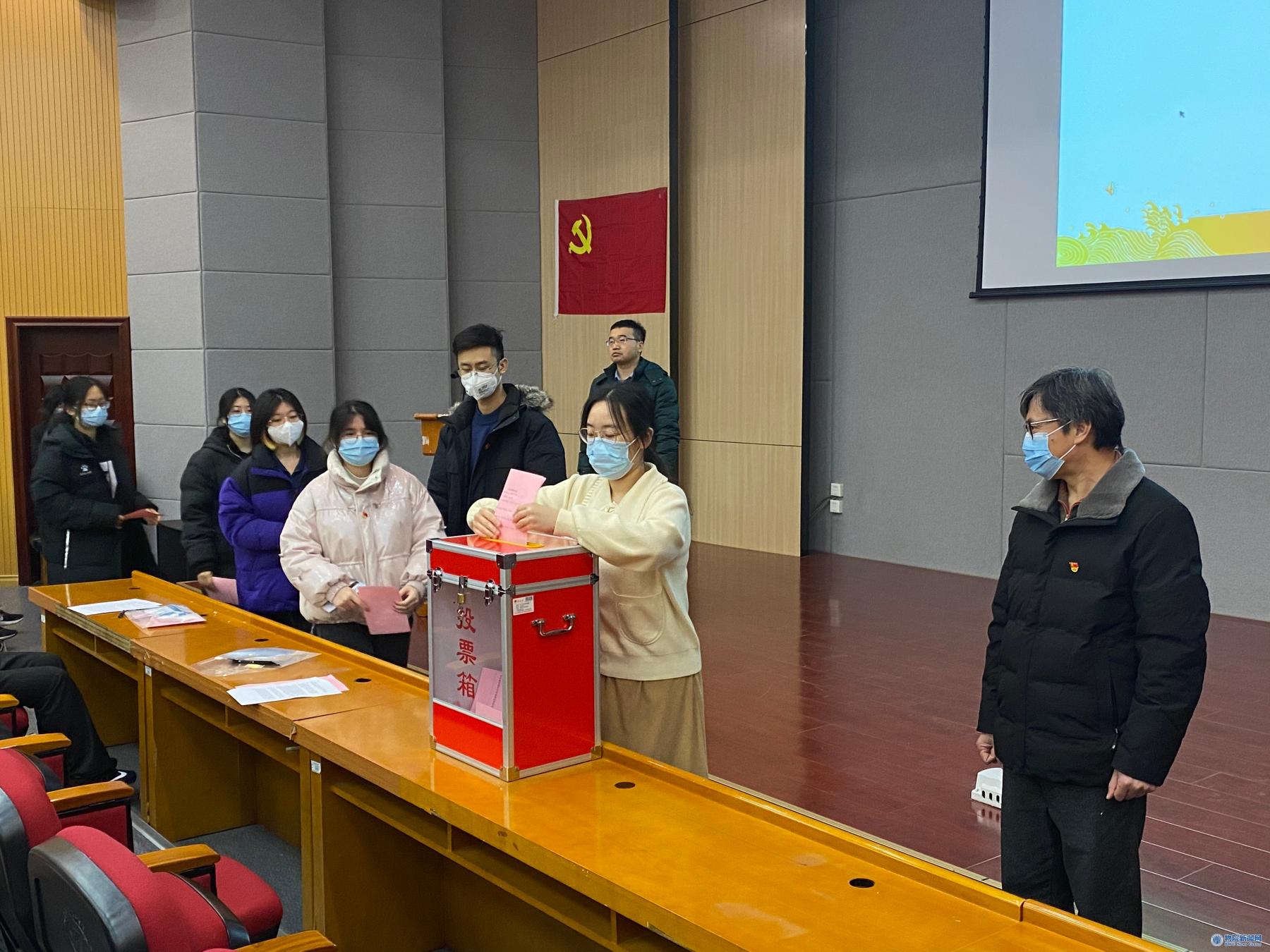 总监票人张喜才同志宣读候选人名单,并做相关介绍,监票人黄长松同志、董海辰同志当场检查票箱并封箱,计票人陈昕、陈晓春分发选票,总监票人说明填写选票的注意事项。填写选票完毕后,师生党员逐一上前投出庄严的一票。