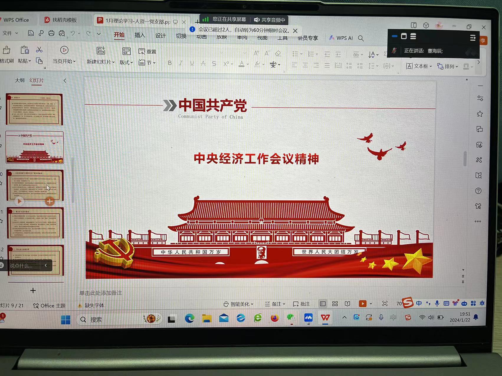 2024年1月22日19:00,党支部组织全体党员在线上召开理论学习会。此次会议由人力资源管理专业学生第一党支部书记董海辰同志主持。本次理论学习会主要围绕深入学习深入学习中央经济工作会议精神及相关内容。