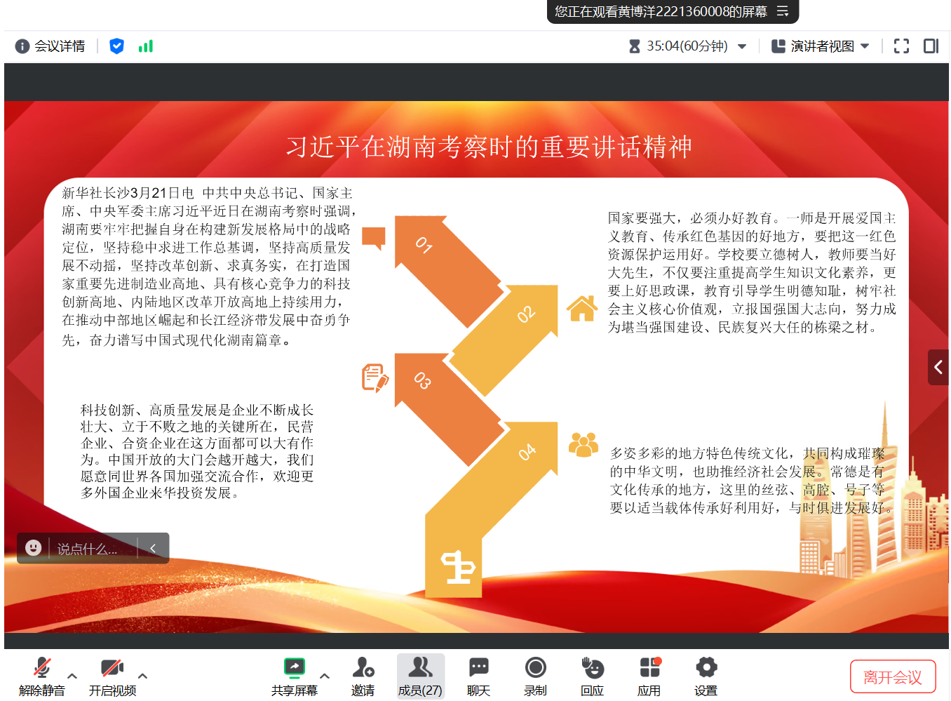 在最后一部分,我们学习了习近平总书记主持召开的新时代推动中部地区崛起座谈会的重要讲话精神。