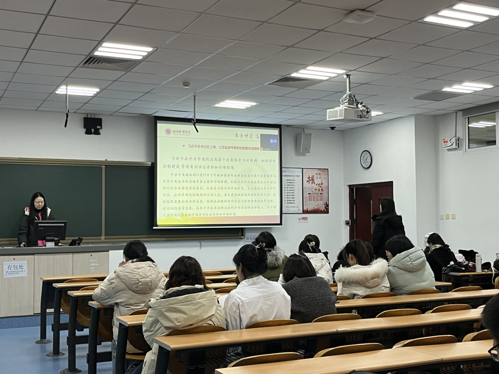 2023年12月13日晚上,党支部组织全体党员在二教303召开理论学习会。此次会议由工商管理专业学生第一党支部书记张悦同志主持。本次理论学习会主要围绕深入学习习近平总书记在上海、江苏盐城考察时的重要讲话精神相关内容展开。