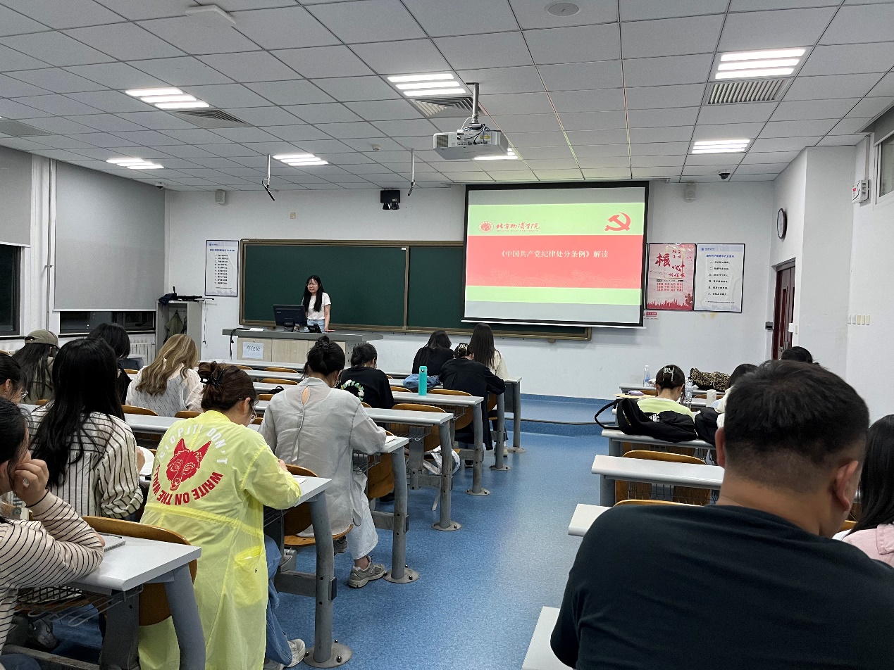 为进一步加强党员干部纪律建设,提高党员遵规守纪意识,2024年5月15日工商管理专业学生第一党支部全体党员开展了《中国共产党纪律处分条例》专题解读学习活动。
