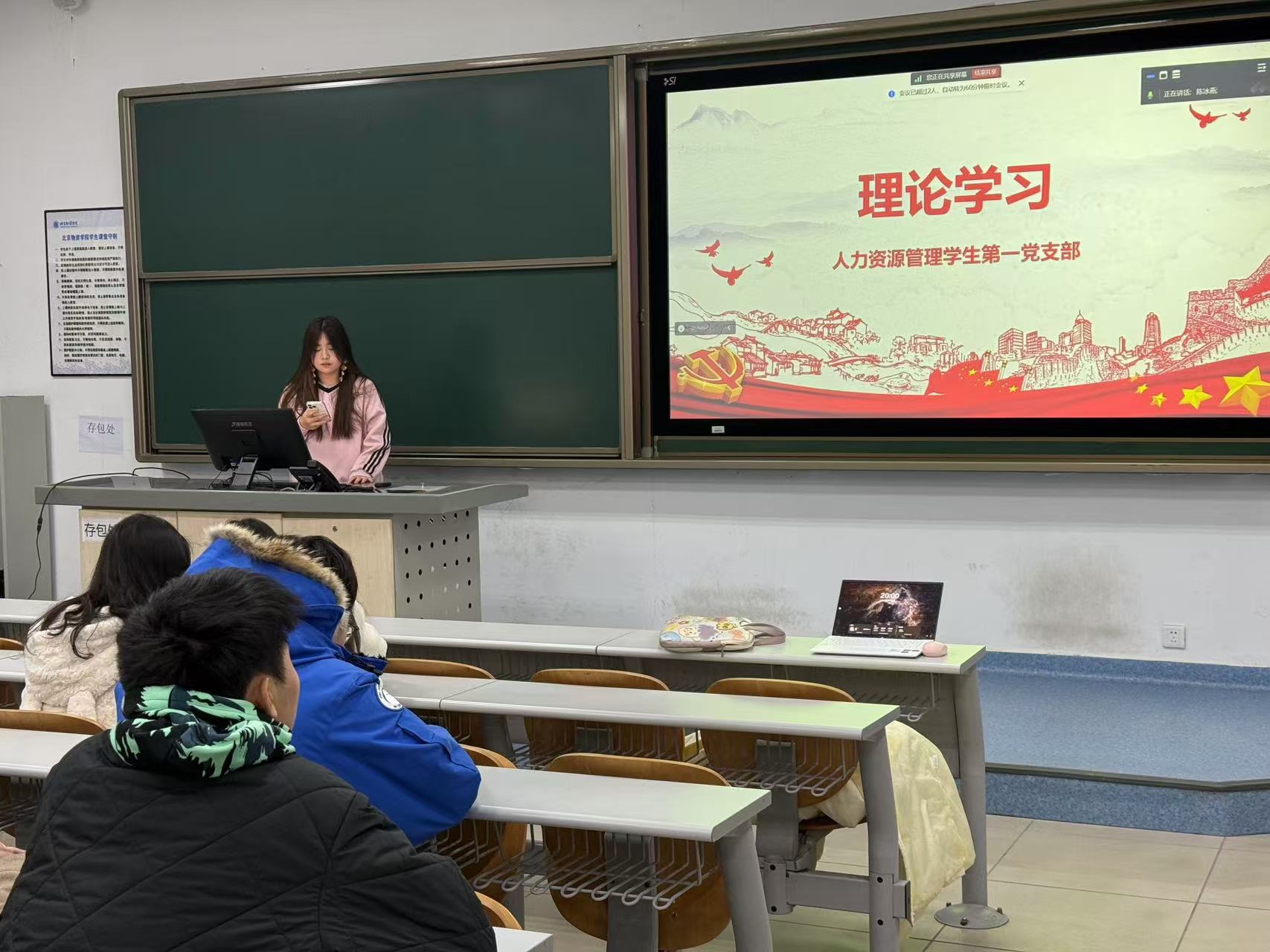 2024年12月10日20:00,党支部组织全体党员在一教105召开理论学习会。此次会议由人力资源管理专业学生第一党支部书记董海辰同志主持。本次理论学习会主要围绕习近平总书记对新时代马克思主义理论研究和建设工程的重要指标以及女仆