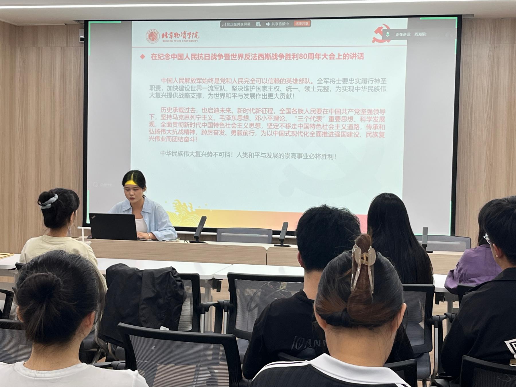 2025年9月24日下午,党支部组织全体党员召开理论学习会。此次会议由工商管理专业学生第一党支部书记闫慧凝同志主持。此次会议由党支部书记闫慧凝同志主持。本次理论学习会主要围绕铭记抗战精神·深化改革开放·拥抱AI+时代——以高质量学科优化服务强国建设展开。