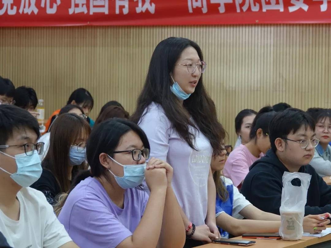 为了帮助同学们理清思路,杨柳依依老师从思想、做人、做事和发展四个方面依次和同学们进行探讨。思想上,她强调学生们要在思想上需要认清自己的定位,明确自己大学四年的奋斗目标。同时还要积极向党团靠拢,做到“心中有信仰,脚下有力量”,形成自己的价值观与世界观。随后,杨柳依依老师又从做人与做事两个层面进行剖析。做人方面杨柳依依老师希望同学们在日常生活中,能够学会“尊重他人与尊重他人的劳动成果”,还要学会换位思考这一重要原则,并列举和同学们贴近的例子加深理解。做事方面杨柳依依老师明确指出同学们做事要可靠,贯彻“任务有回应,沟通要及时”这一工作准绳,同时还要处理好人际关系,培养自己的抗压能力及创新能力。最后杨柳依依老师着重强调,同学们要平衡好学习与学生工作之间的时间,在日常生活中坚持做一个真诚的人,早日成为卓越的复合型人才。为加强互动性,老师还与同学们进行了交流。