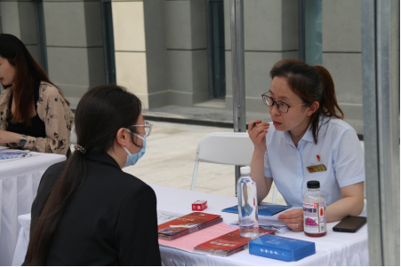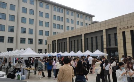与比赛同步进行的实习就业双选会在知新楼东侧小广场举办,提供人力资源岗、营销推广岗、客户服务岗等就业岗位260多个。现场气氛如火如荼,双选会共吸引到全校各年级各学院600余同学参加,同学们积极向企业咨询、投递简历。