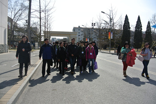 魏院长与于老师首先带领着大家参观了校园,向大家介绍学校文化及硬件设施等,并围绕课堂教学模式、改革思路、教学手段等方面进行了深入讨论,互相分享经验。接下来,一行人来到二教208听取了女仆