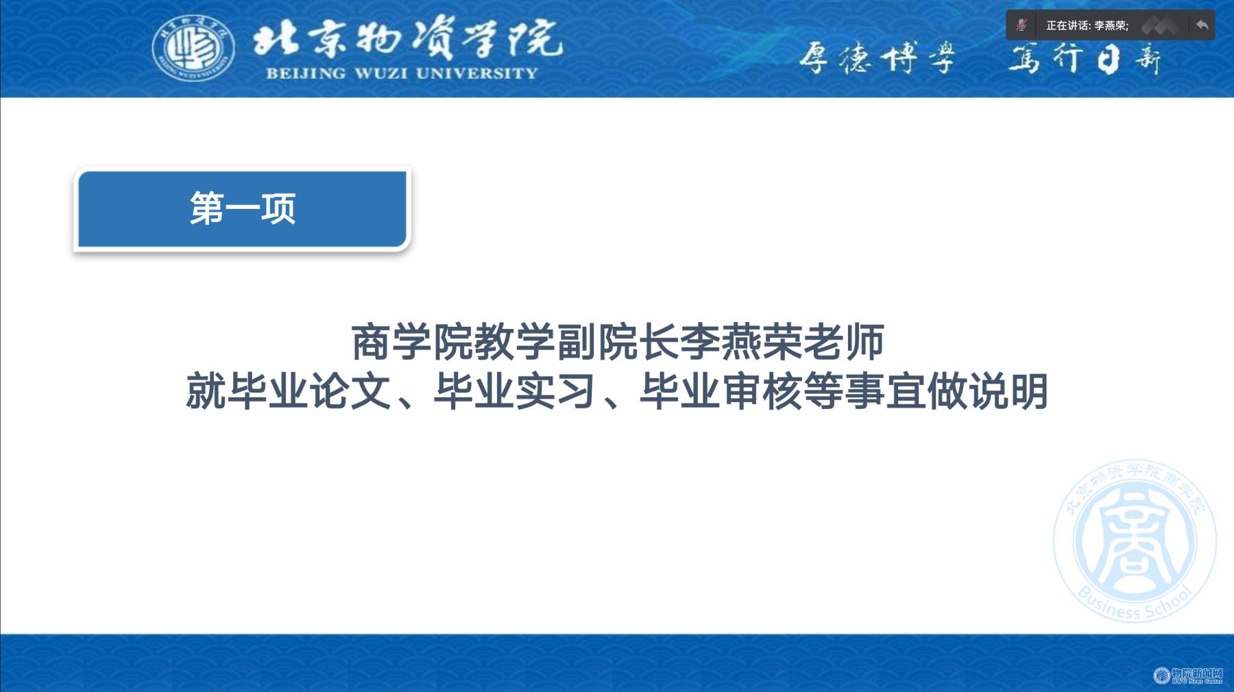 会议第一项,教学副院长李燕荣老师就2022届毕业生的学业完成、就业选择以及个人发展展开介绍,为同学们详细讲解了学位授予的条件与培养方案学分要求,提醒同学们注意应修课程的查漏补缺,在打好学业根基的基础上实现能力提升;李老师围绕毕业生当前重点实习总结与论文写作,按照时间轴依次解读毕业实习成绩统计与总结提交工作,毕业论文初稿撰写提交、中期检查以及查重答辩安排;对于同学们关心关注的就业问题,李老师给出要了解就业形势、做好生涯规划、规避社会奉献、细分就业信息、提升行动能力,尤其是多与毕业的师哥师姐交流取经验的建议,李老师希望大家能够牢记“今天你以物院为荣,明天物院以你为傲”的奋斗精神,在个人发展中常怀感恩之心,志存高远、敢于担当。
